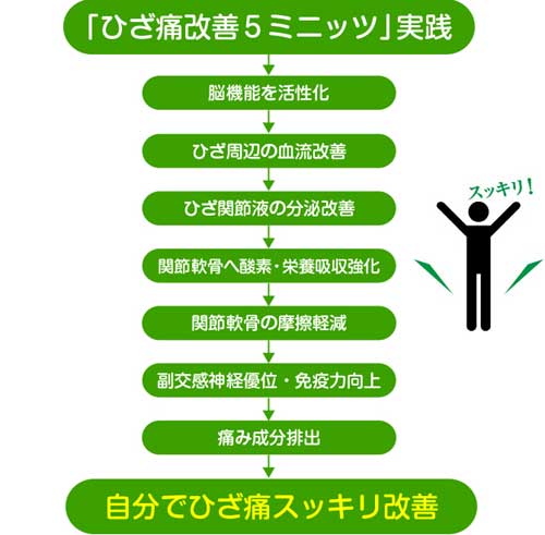 このプログラムは、脳を活性化させることで自然治癒力を最大限に引き出し、同時にひざ周りの血流を